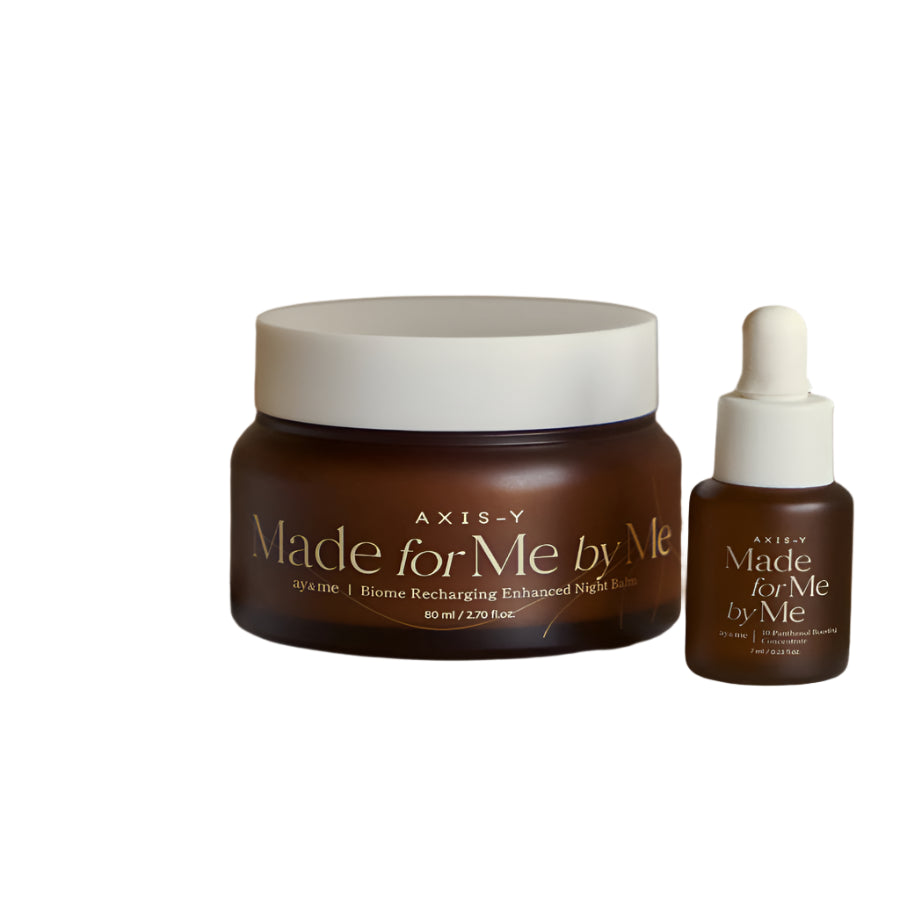 This Recharging Night Renewal Set features a night balm and a booster which work harmoniously together. The booster features Panthenol which promotes skin regeneral while the night balm features probiotics to improve skin health and reduce the appearance of fine lines. Suitable for all skin types.