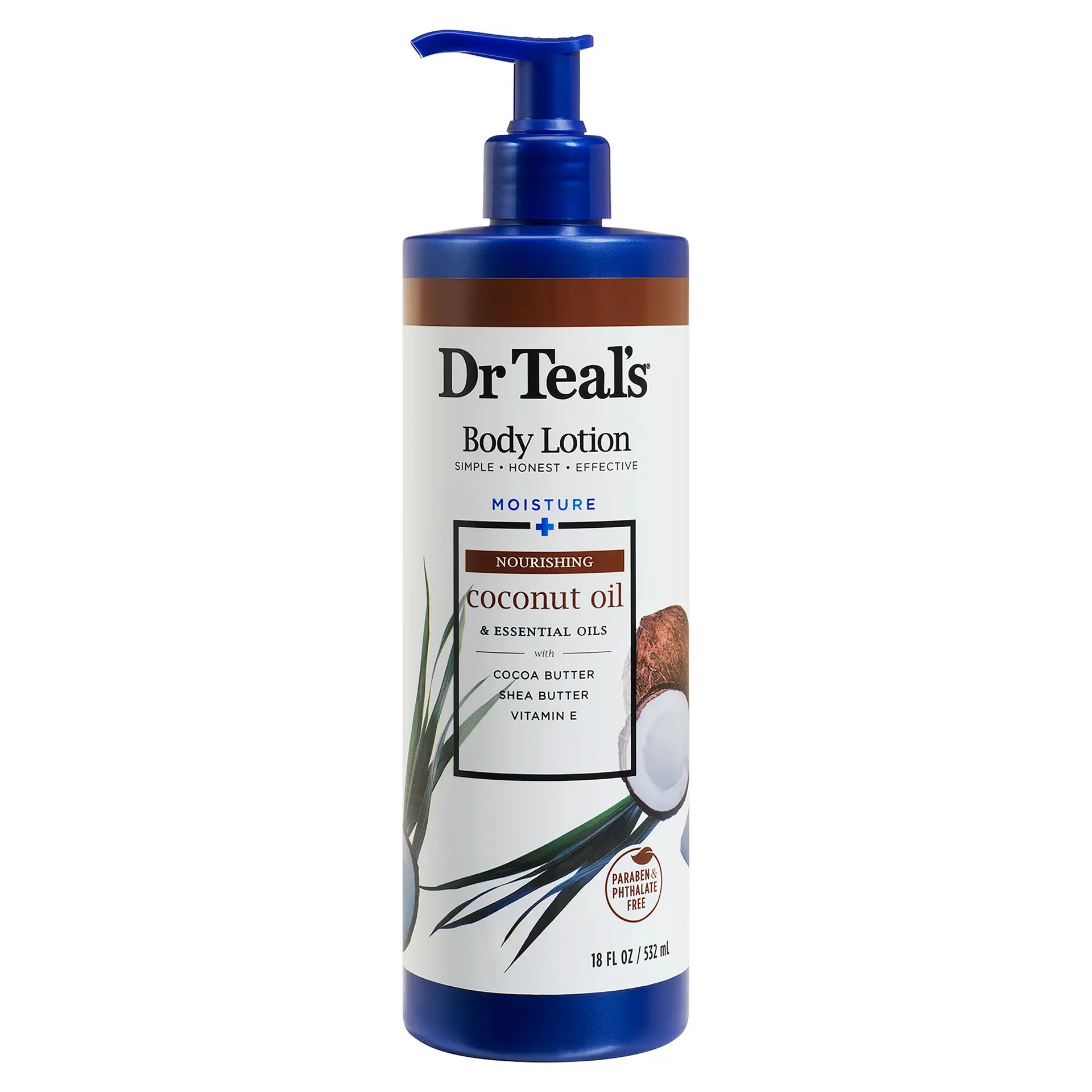 Dr Teal's Coconut Body Lotion combines nourishing coconut oil with essential oils, cocoa butter, shea butter and vitamin E for deep moisture. This paraben and phthalate-free formula provides effective hydration while being simple and honest in its approach to skincare. The 532ml lotion comes in a convenient pump bottle format for easy dispensing. The formula is designed to be moisturizing while remaining lightweight and non-greasy. As a personal care product focused on body moisturization, this lotion aligns with Dr Teal's reputation for creating effective, straightforward skincare solutions.