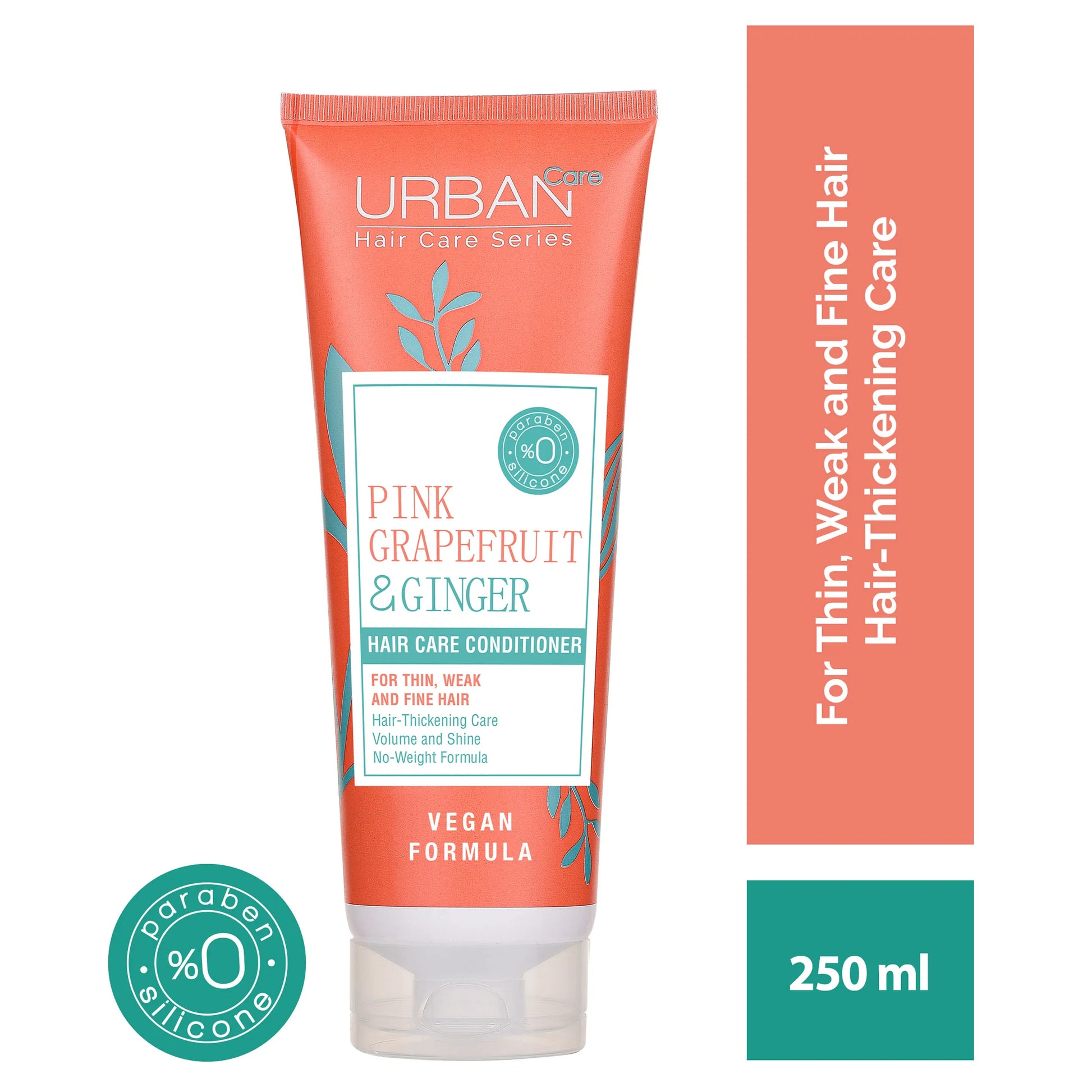 Urban Care Pink Grapefruit & Ginger Conditioner 250 ml is designed for thin, weak and flat hair. The special formula helps add volume to flat and weak hair and thickens it. Nourishes and adds shine to hair thanks to special active ingredients in the formula. Helps strengthen and add volume to your hair from roots to ends. Makes hair soft and easy to comb through. Does not weigh hair down. The herbal keratin in the formula helps reconstruct hair and provides protection while aiding in repair. Free of silicones and parabens.